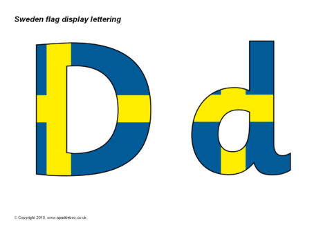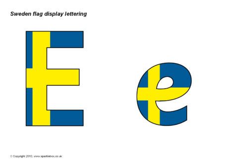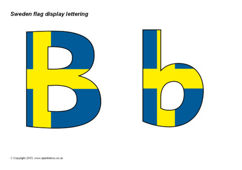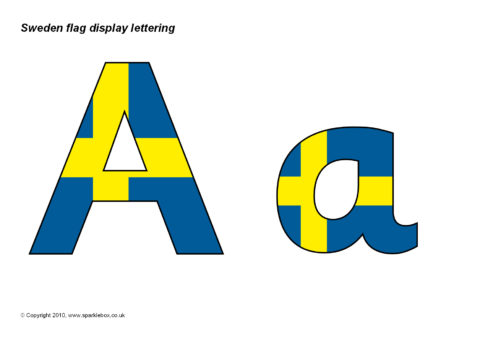 A PDF document with 26 alphabet letters (upper and lowercase) patterned with the Swedish flag. These are great for printing and cutting out for use on displays.