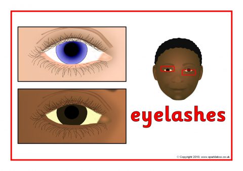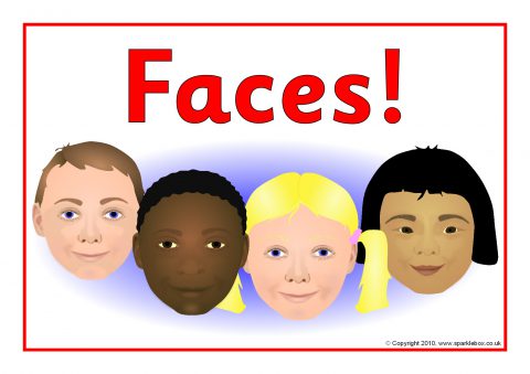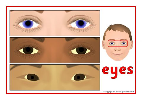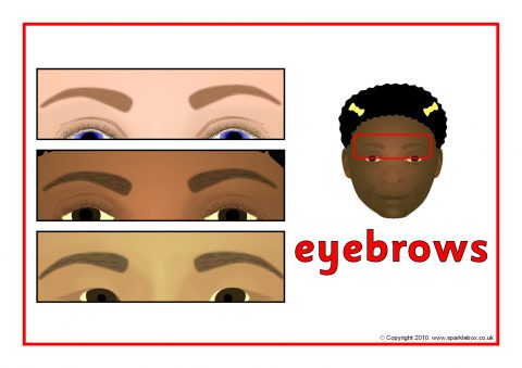 A set of posters showing different facial features on children.