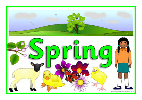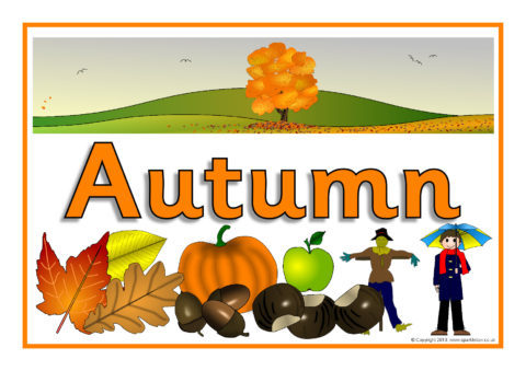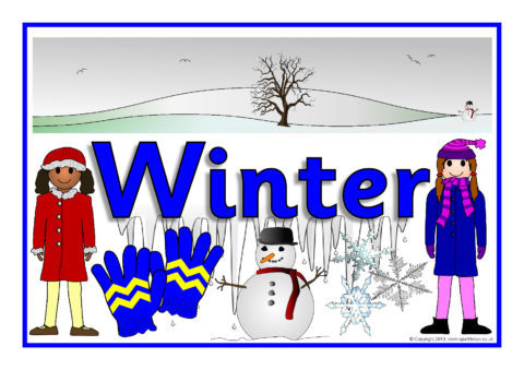 Four A4-sized posters showing pictures associated with each of the four seasons.