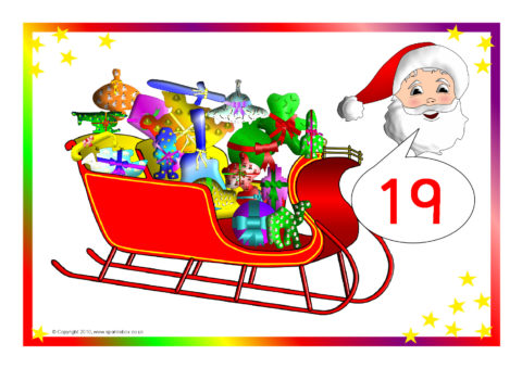 A set of printable posters where children can count and say the number of presents in Santa’s sleigh from 0-20.