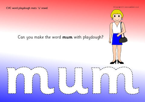 CVC Word Playdough Mats – ‘u’ Vowel (SB3259) - SparkleBox