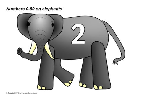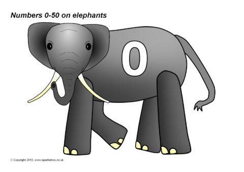 The numbers 0-50 presented on connecting elephants.