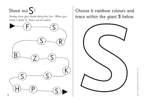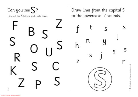 A set of sheets which can be assembled into an A5 folded booklet to give to pupils. It includes activities to aid recognition of the capital letter 'S'. Ideal as a homework resource.