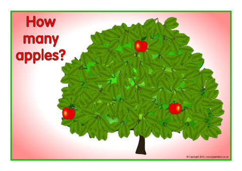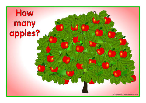 A set of 30 A4-sized posters showing apples on trees from 1-30. Great as visual aids for counting and estimation.