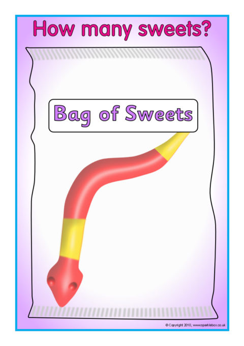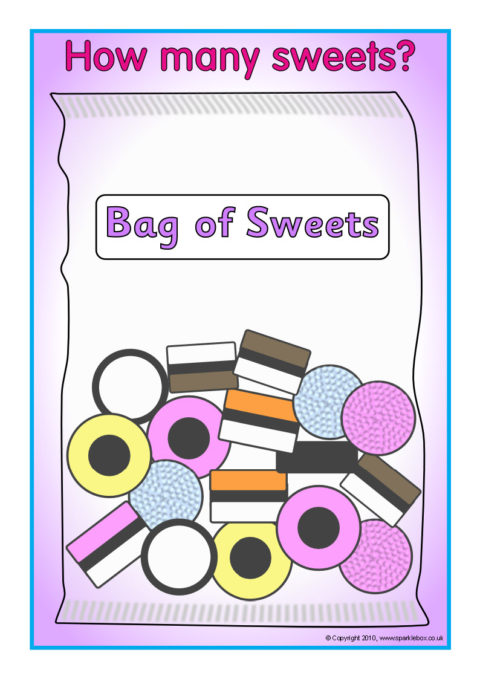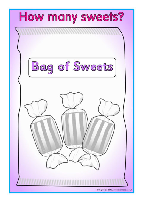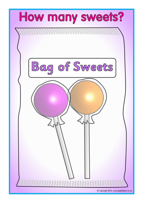 A set of 30 A4-sized posters showing various sweets in bags from 1-30. Great as visual aids for counting and estimation.
