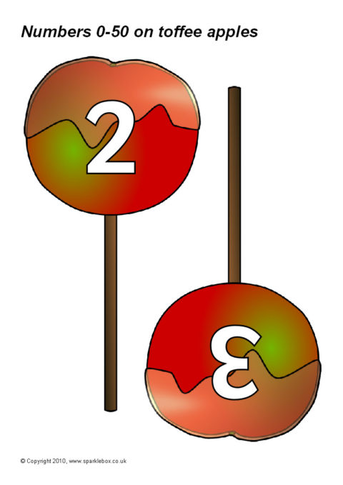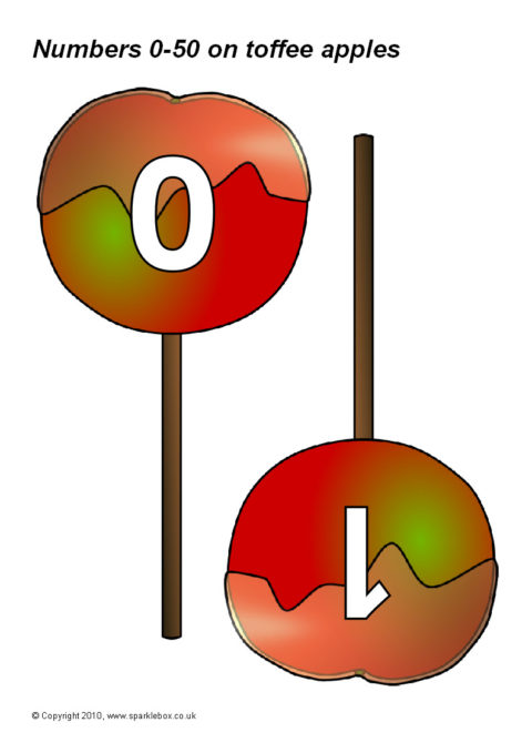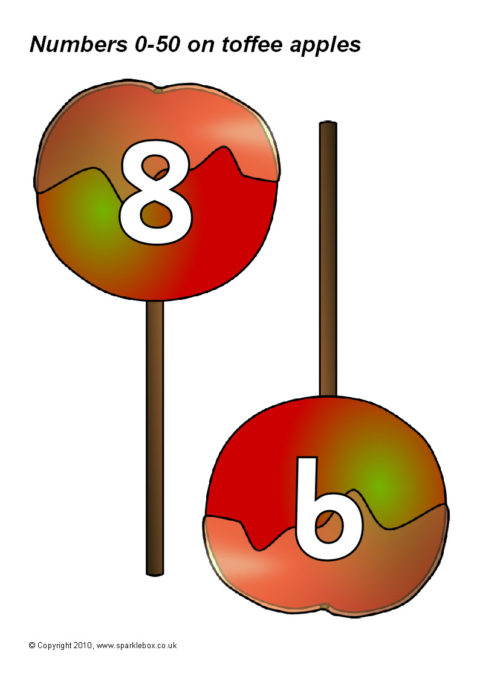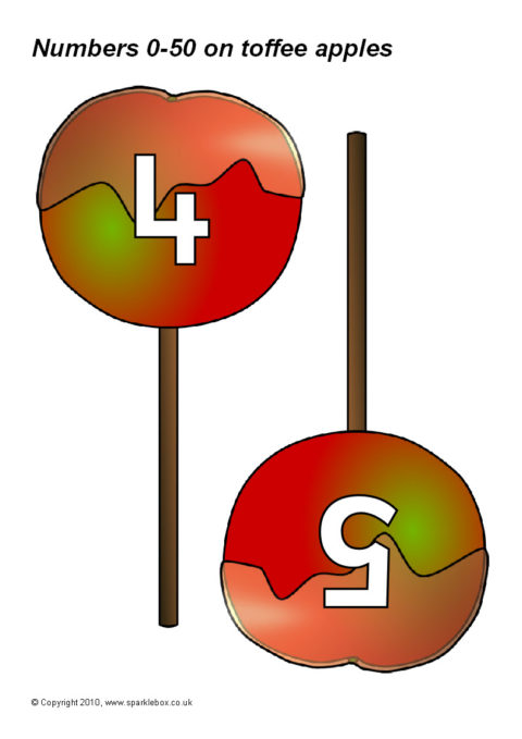 Numbers 0-50 on Toffee Apples (SB3307) - SparkleBox