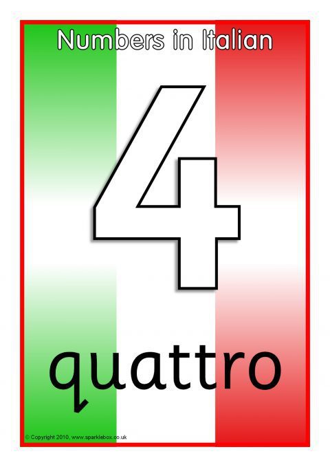 A set of A4 posters featuring the numbers 0-20 together with the accompanying Italian number-words.