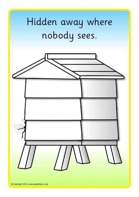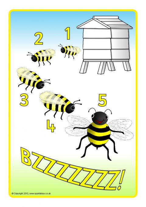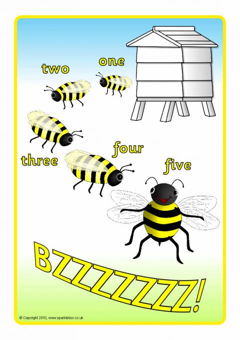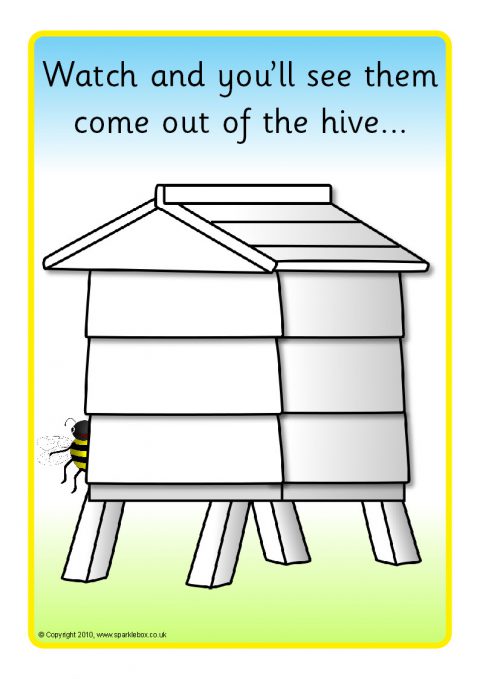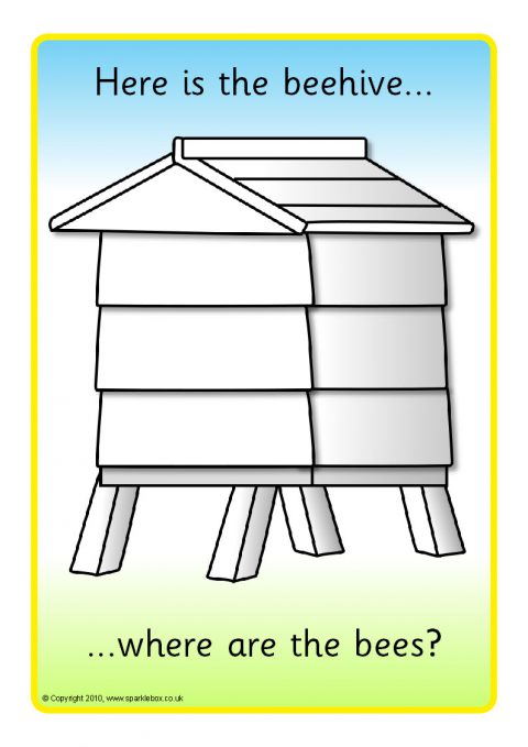 A set of A4 visual aids to accompany the number rhyme ‘Here is the beehive...’.