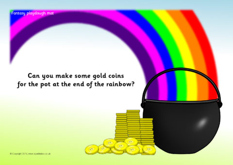 A set of 8 playdough mats with a fantasy theme. Featuring a dragon, witch, wizard, fairies, rainbow gold and more.