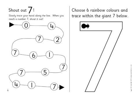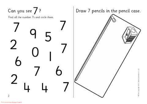 A set of sheets which can be assembled into an A5 folded booklet to give to pupils. Includes activities to aid recognition and writing of the number 7. Ideal as a homework resource.