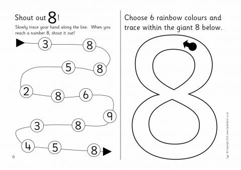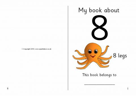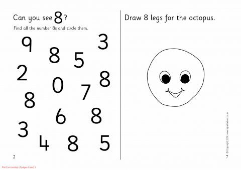 A set of sheets which can be assembled into an A5 folded booklet to give to pupils. Includes activities to aid recognition and writing of the number 8. Ideal as a homework resource.