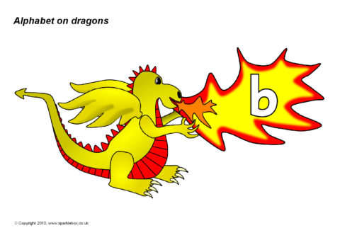 Alphabet on Dragons (SB3439) - SparkleBox The lowercase alphabet letters presented on different coloured dragons. ">