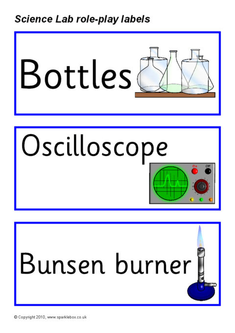 Everything you need to set up a brilliant Science Lab role-play area! The set includes a printable chemical order form, banner, authentic-looking warning signs, word labels and more.