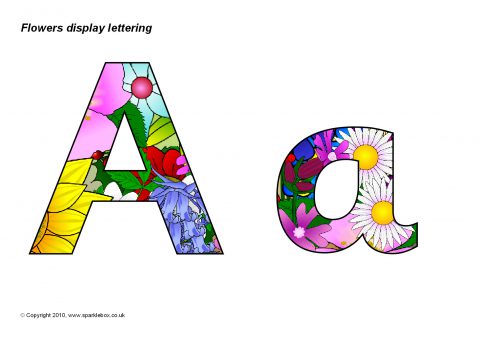 A PDF document with 26 alphabet letters (upper and lowercase) themed with flowers. These are great for printing and cutting out for use on displays.