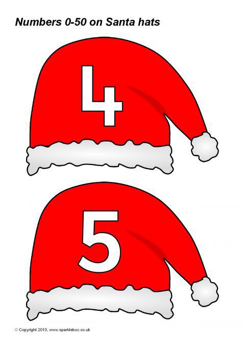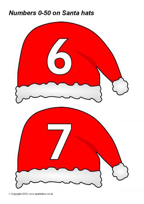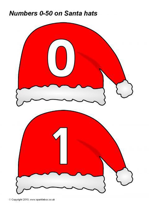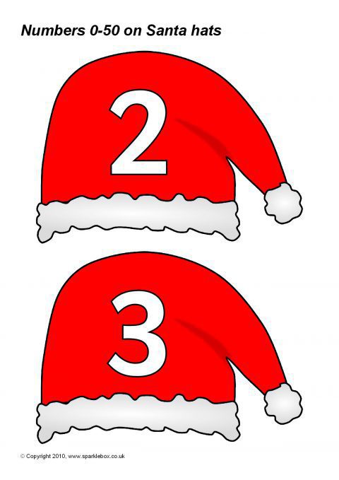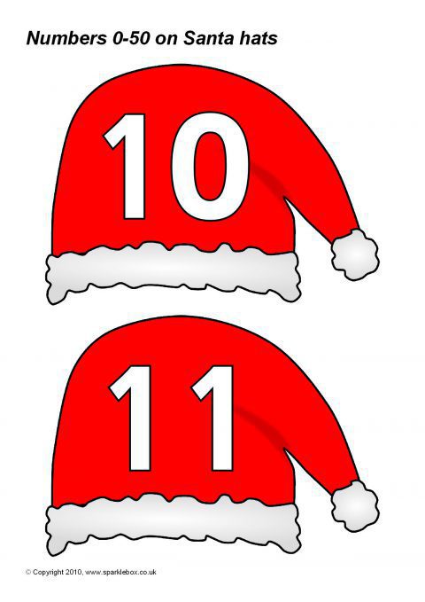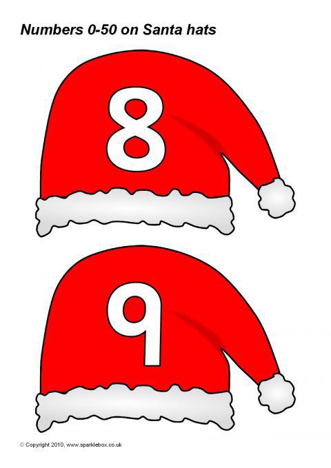 Numbers 0-50 on Santa Hats (SB3526) - SparkleBox