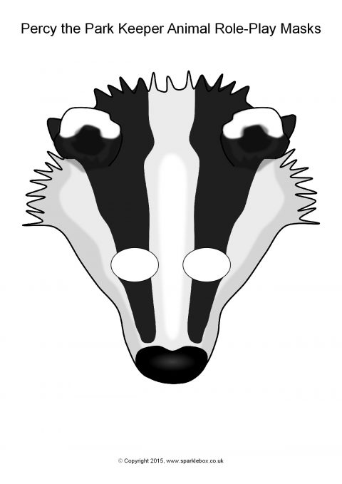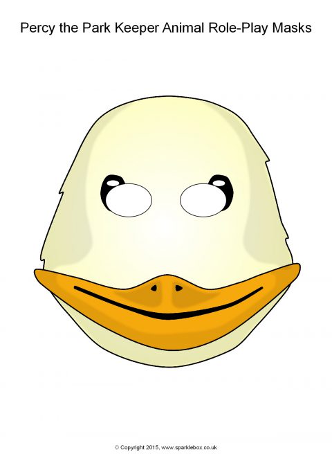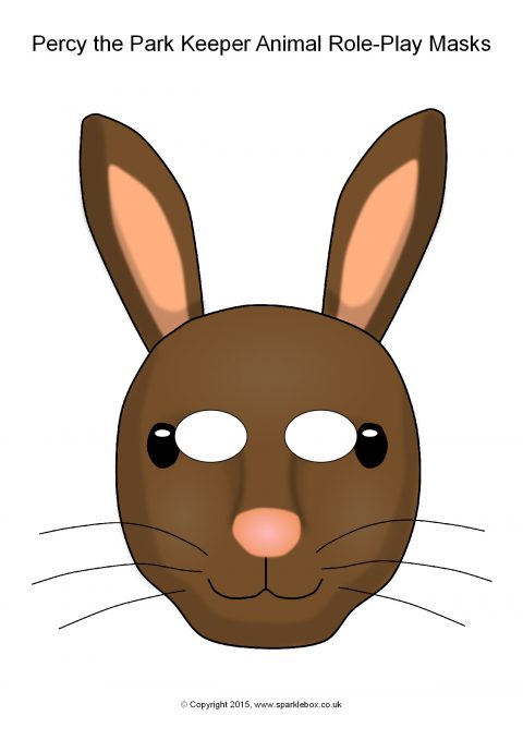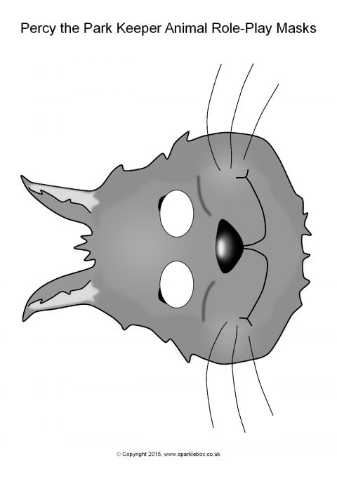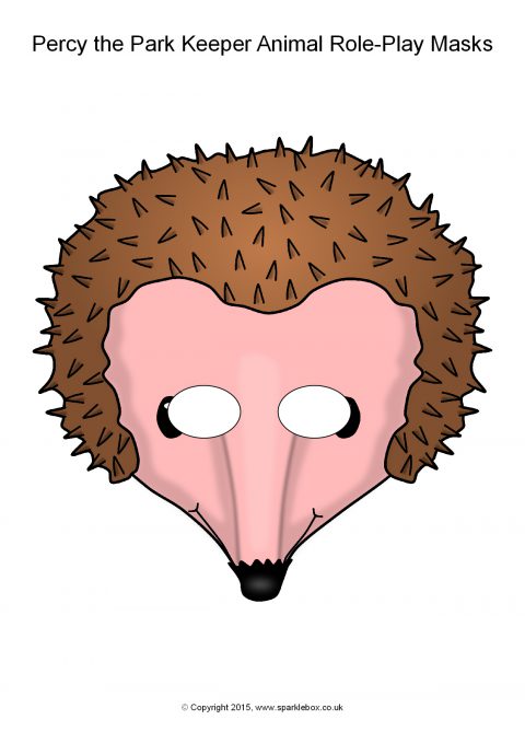 Simple printable masks featuring animals linked to the Percy the Park Keeper stories.