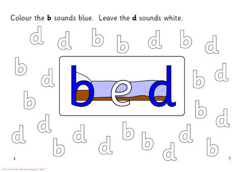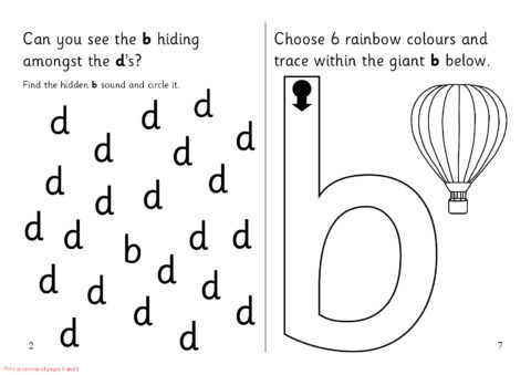 A set of sheets which can be assembled into an A5 folded booklet to give to pupils. It includes activities to aid the distinction between the similar-looking b and d letters. Ideal as a homework resource.