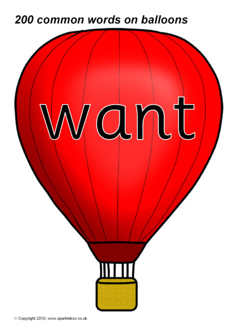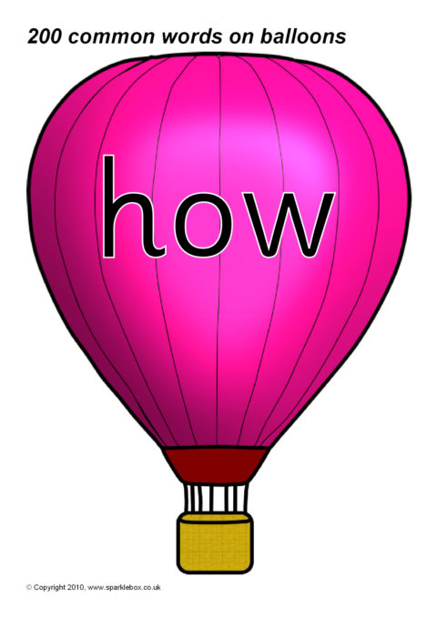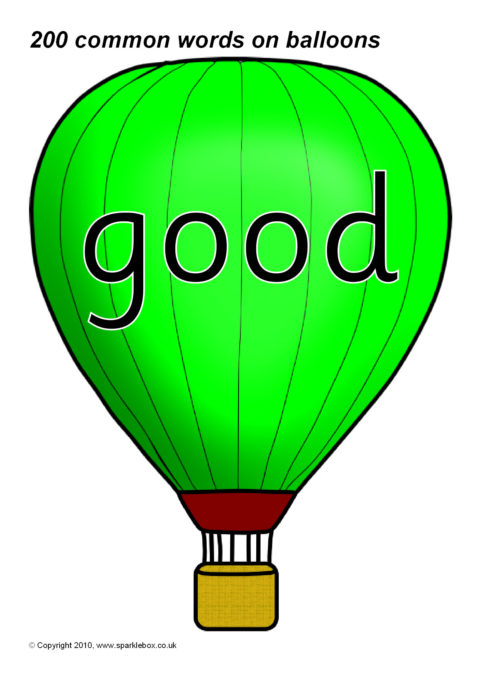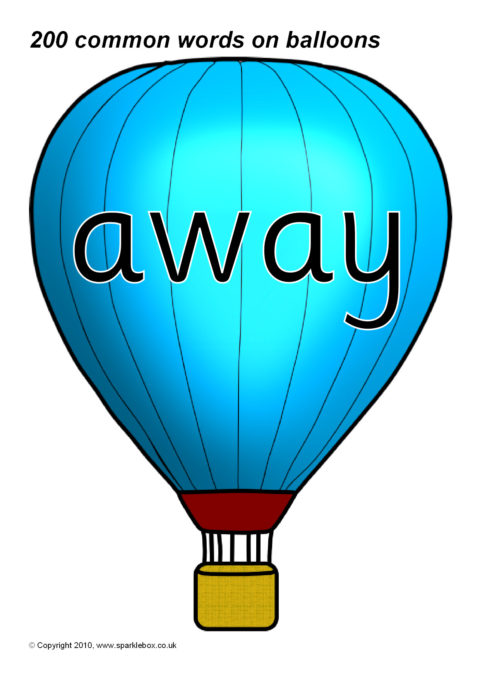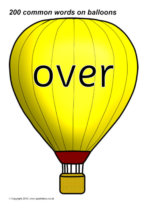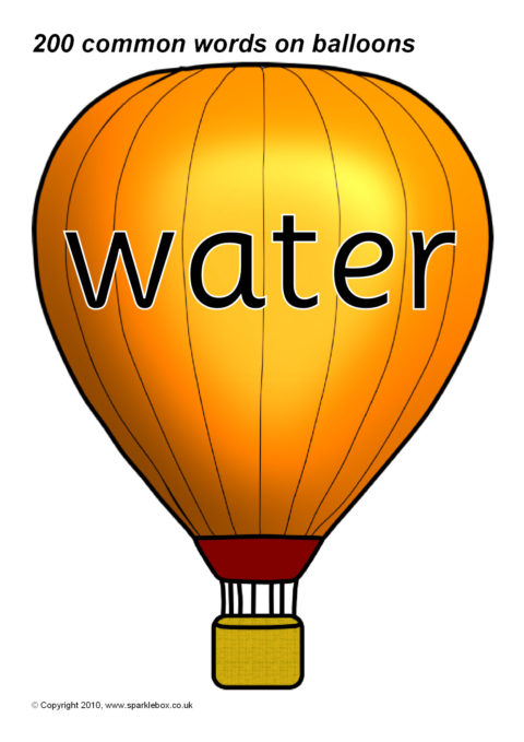 A set of printable coloured hot air balloons showing the 200 common words as specified in the DfES ‘Letters and Sounds’ publication.