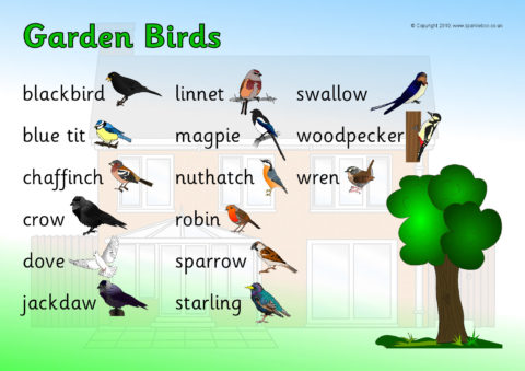A printable word mat featuring names and pictures of UK garden birds. Great for children to use as prompts when writing or as a ‘bird spotter’ sheet.