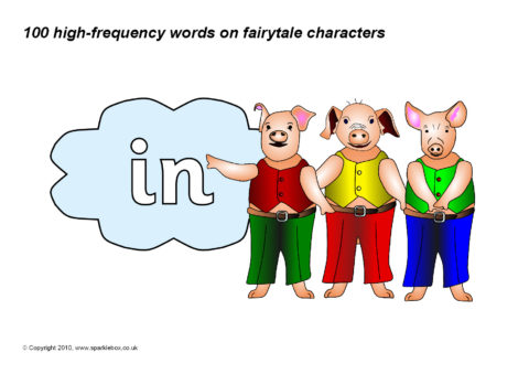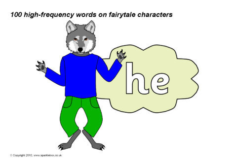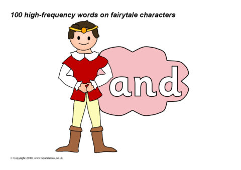 The 100 high-frequency words as specified in the DfES ‘Letters and Sounds’ publication presented on fairy/traditional tale characters.