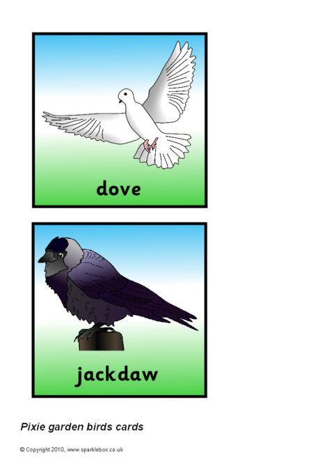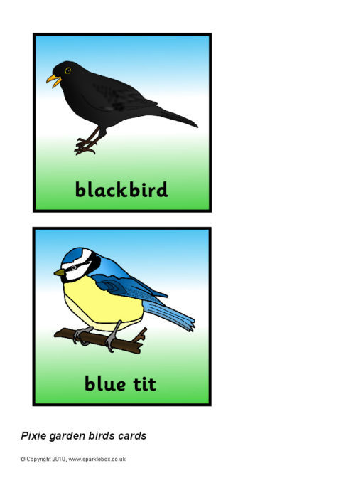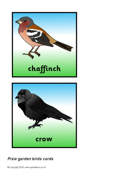Multi-use printable cards featuring a selection of garden birds. Each card is 11cm by 11cm - ideal for use with a Pixie programmable robot.