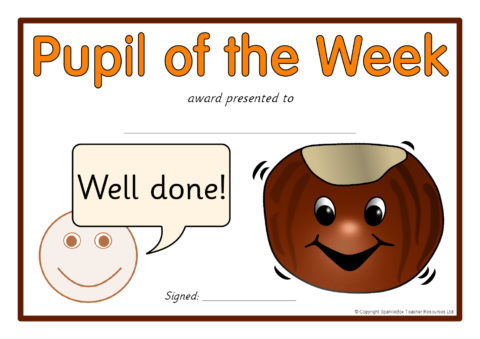 Conker-themed reward certificates to accompany the conker target sheets.