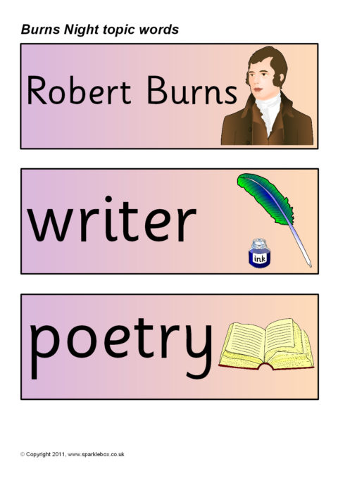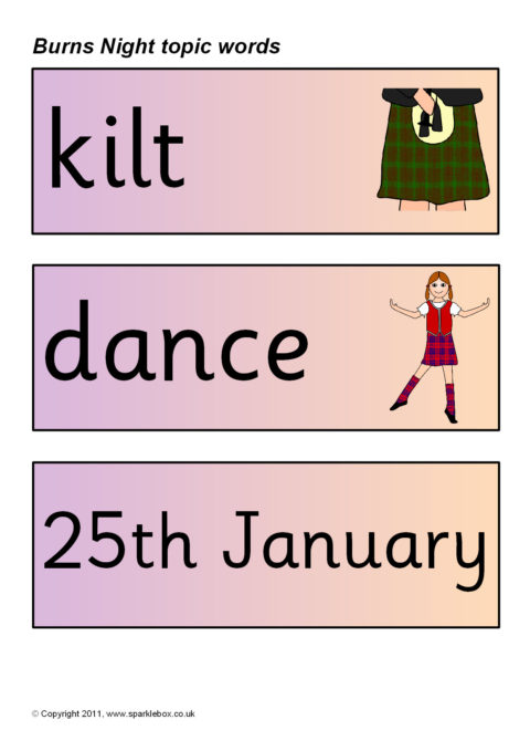 Printable word and picture cards linked to the Scottish celebration of Burns Night.
