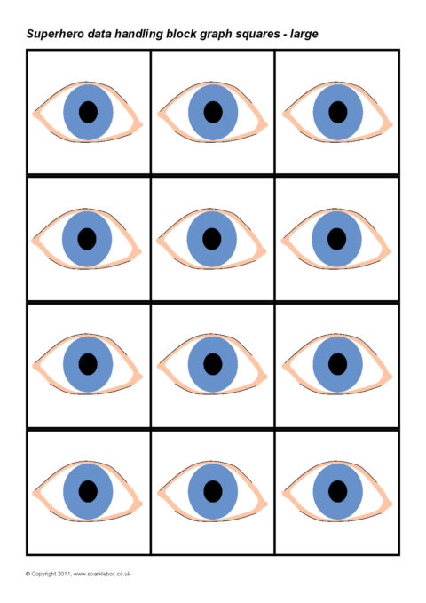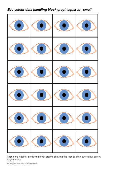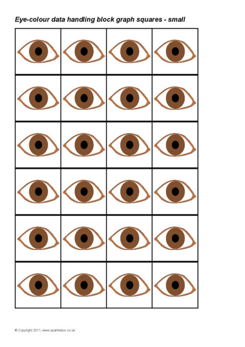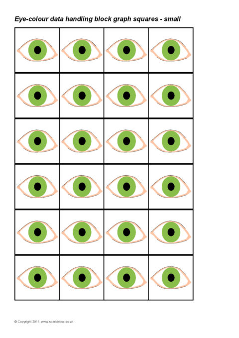Printable squares featuring different coloured eyes. Ideal for use when creating a pictogram to showing the results of a class survey on eye-colour.