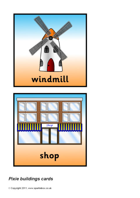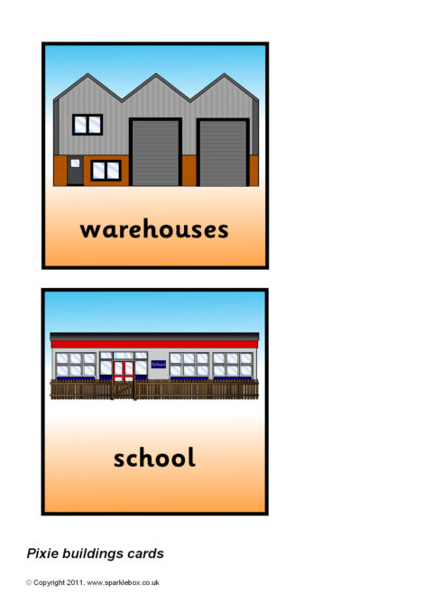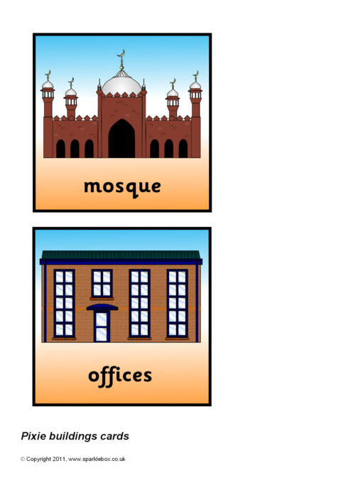 Multi-use printable cards with pictures and words of various buildings. Each card is 11cm by 11cm and ideal for use with a Pixie programmable robot.