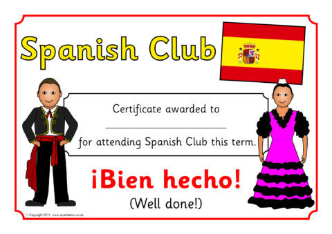 Printable certificates to present to members of your Spanish club termly, half-termly, monthly or yearly.