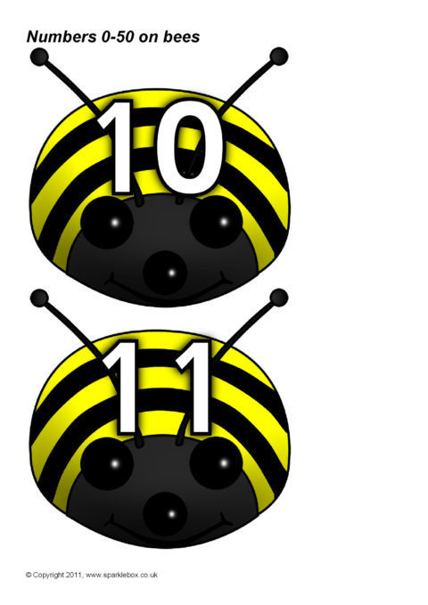 Numbers 0-50 on Bees (SB3780) - SparkleBox