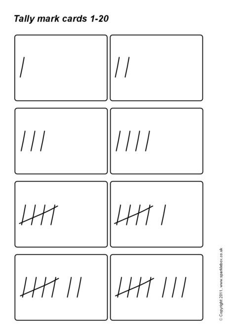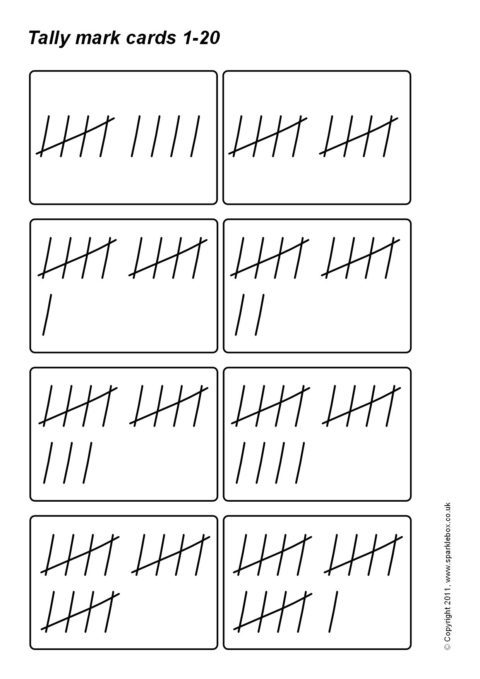 Tally Mark Flash Cards 1-20 – Small (SB3784) - SparkleBox
