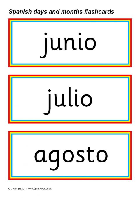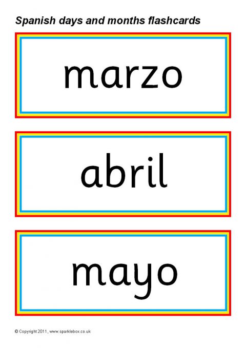 Spanish Days and Months Flash Cards (SB3815) - SparkleBox