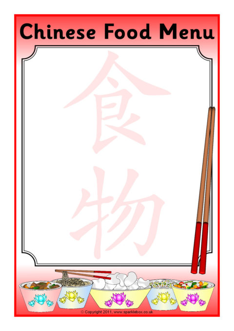 Chinese Food Menu Writing Frame (SB3861) - SparkleBox