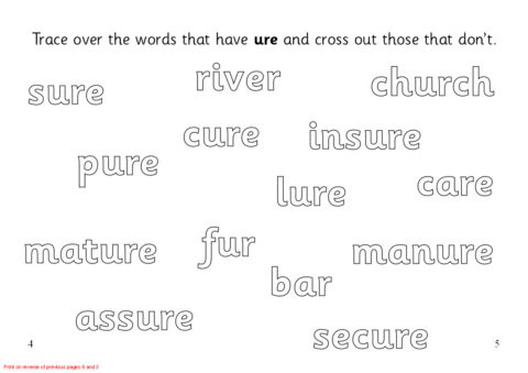 A set of sheets which can be assembled into an A5 folded booklet to give to pupils. It includes activities to aid recognition of the ‘ure’ sound. Ideal as a homework resource.