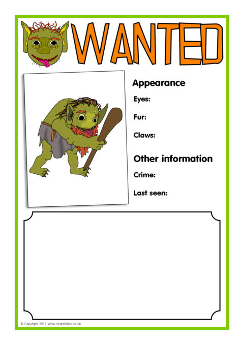 Troll Wanted Poster Writing Frames (SB3940) - SparkleBox