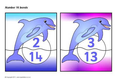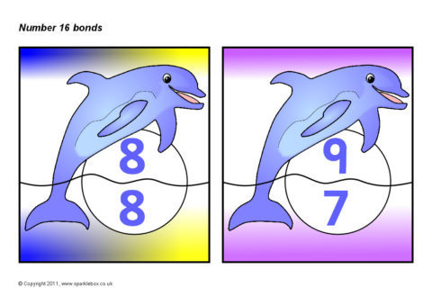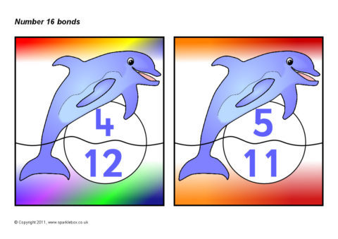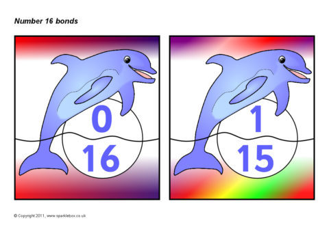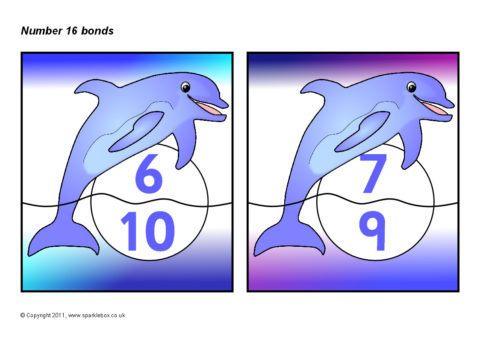 Children match together the two halves of the mini jigsaws to make number 16 bonds. Featuring a dolphin character.