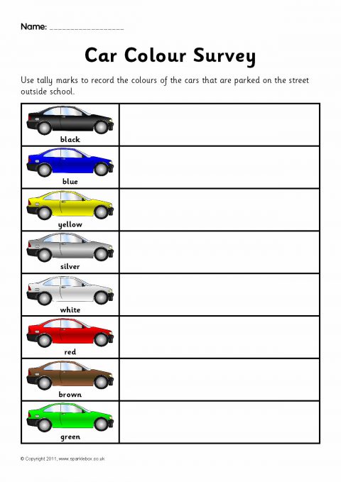 Printable worksheets for children to survey the colours of cars passing in traffic or parked around the school.