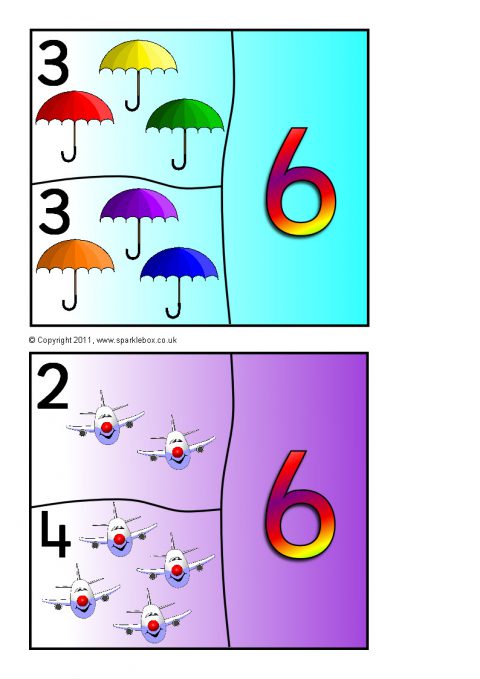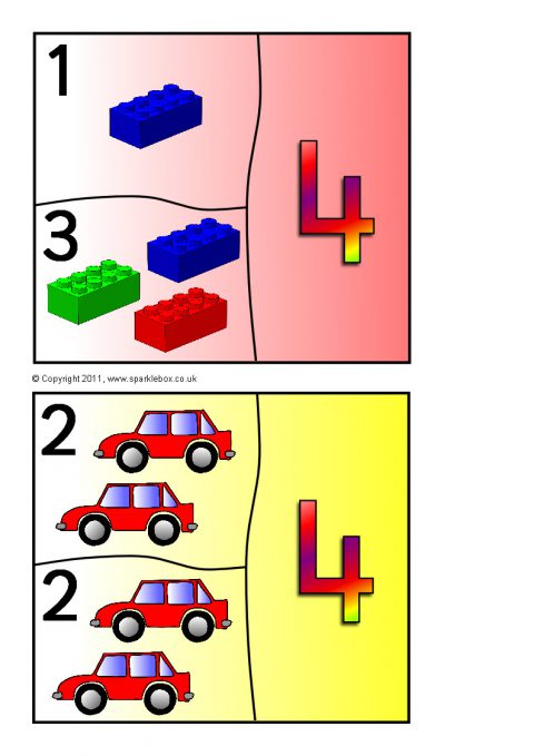 Children match together the different parts of each jigsaw to make different number bonds/complements for numbers 3 to 9.
