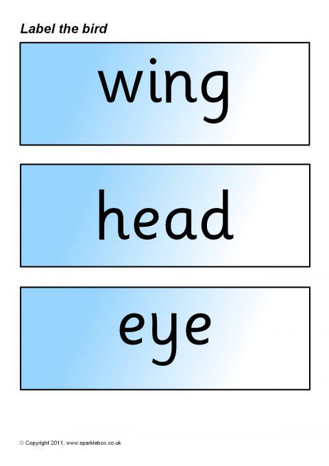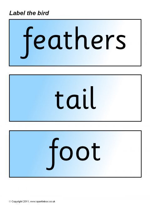 Cut-and-stick worksheets where pupils label the birds, as well as word cards and bird pictures for whole-class discussion.