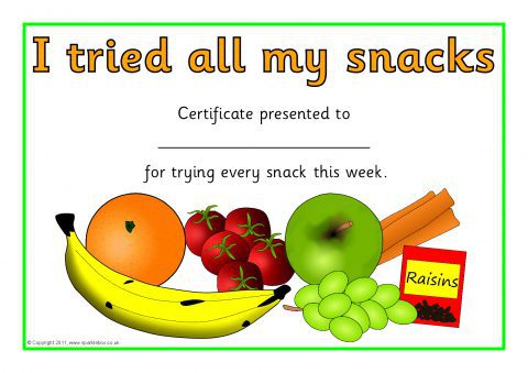 Certificates to present to children for eating/trying their snacks or fruit at snack time.