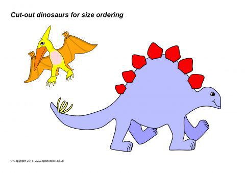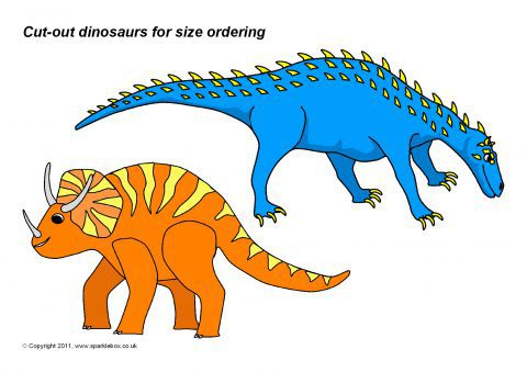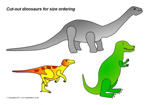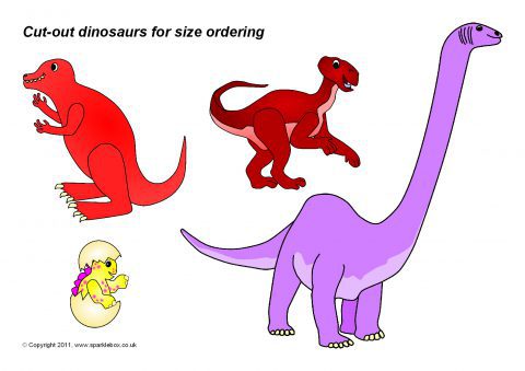 A set of different-sized dinosaur pictures that can be cut out and used for size ordering activities. Dinosaurs could be ordered by height, length or overall size