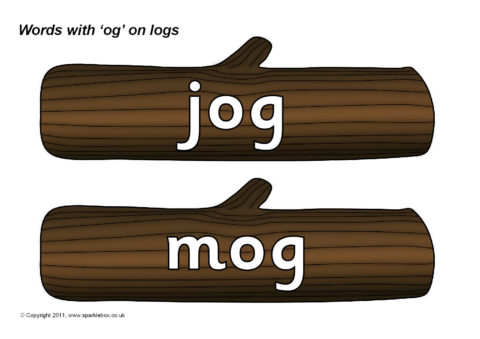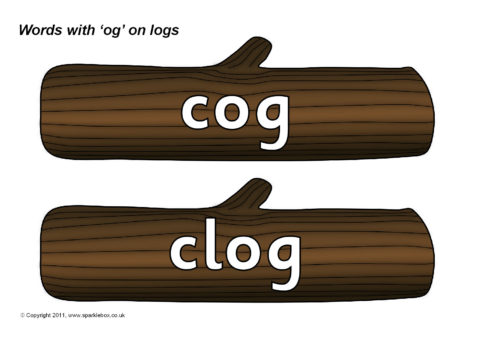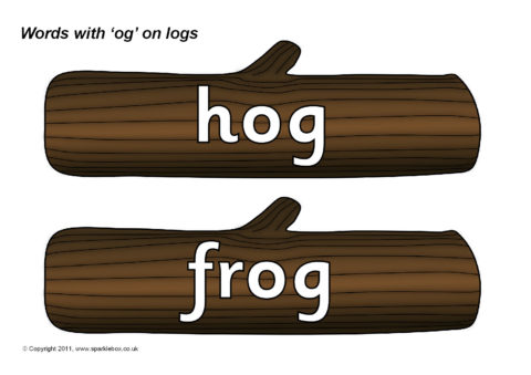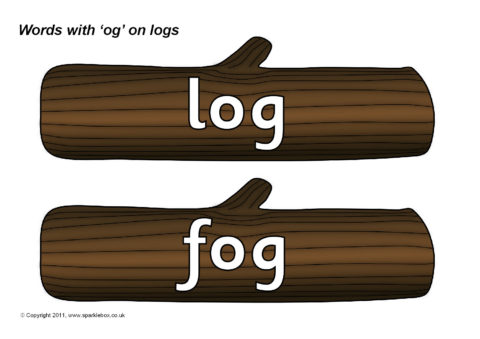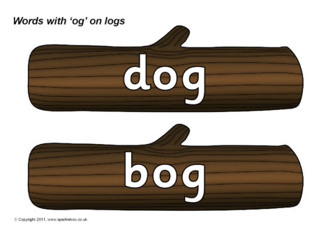 Words with the rime ‘og’ presented on logs.