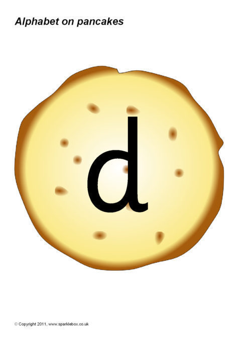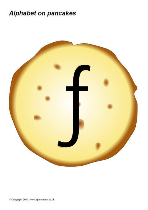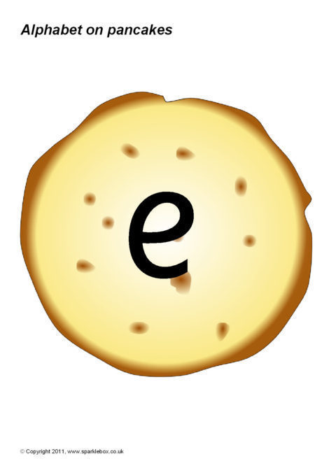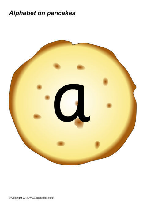 The lowercase alphabet letters presented on pancake images - one per A4 sheet.