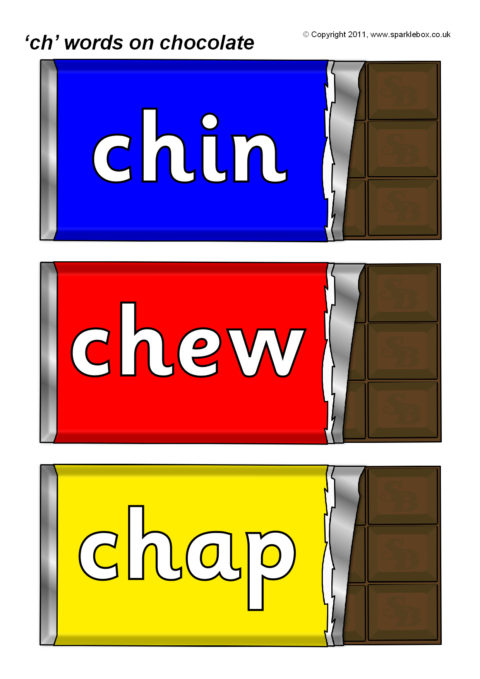 Words with onset ‘ch’ on Chocolate Bars (SB4144) - SparkleBox