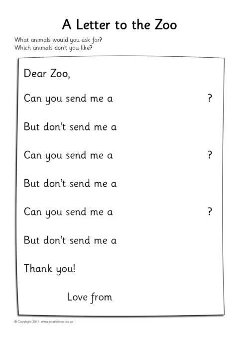 Dear Zoo Letter Writing Frames (SB4175) - SparkleBox