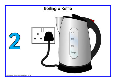A set of posters showing the basic process of boiling a kettle. Great for use as part of a topic on electricity.