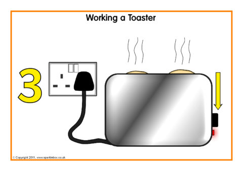 A set of posters showing the basic process of working a toaster. Great for use as part of a topic on electricity.