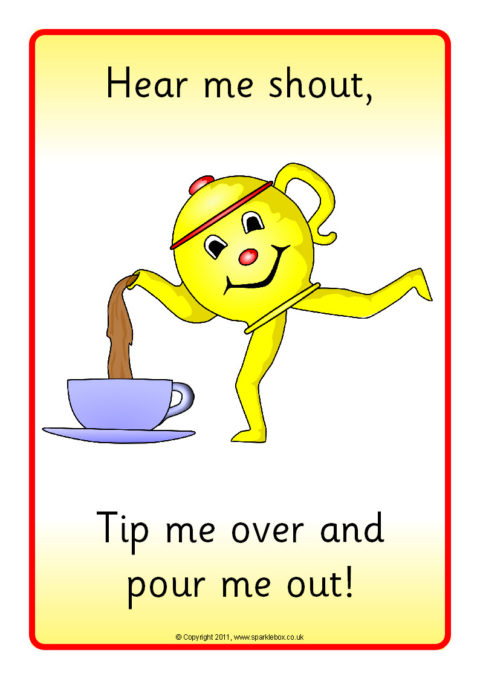 A set of A4 visual aids to accompany the popular nursery rhyme ‘I’m a little teapot...’.