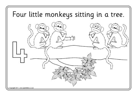 A set of A4 colouring sheets to accompany the number rhyme ‘Five Little Monkeys’.